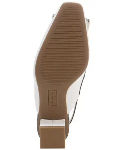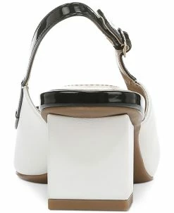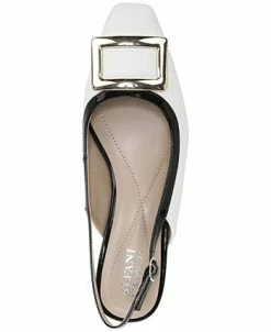 - Square-toe slip-on slingback pumps with adjustable buckle closure