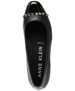 Chain hardware and patent cap-toes bring striking polish to dressy looks elevated by a chic wedge lift in the Maysel slip-ons from Anne Klein.