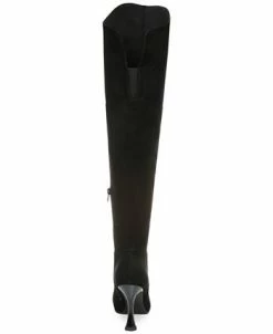 Asymmetrical toplines and an over-the-knee silhouette top off pointed toes and sculpted heel in the gorgeous Ammi boots from Bar III.