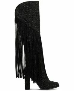 - Pointed-toe over-the-knee boots with zipper closure