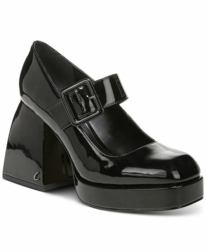 Glossy block heels and chunky platforms elevate a retro Mary Jane look in the fresh Khiara pumps from Circus by Sam Edelman.