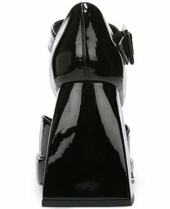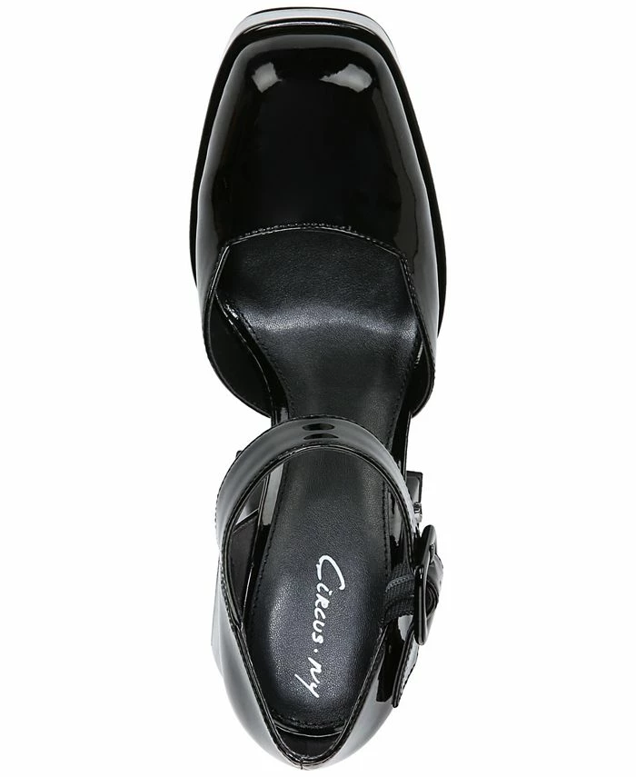 - Round-toe Mary Jane ankle-strap platform pumps with adjustable buckle closure
