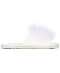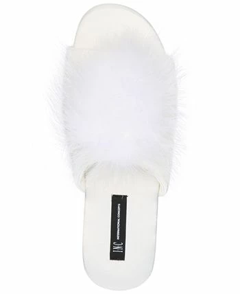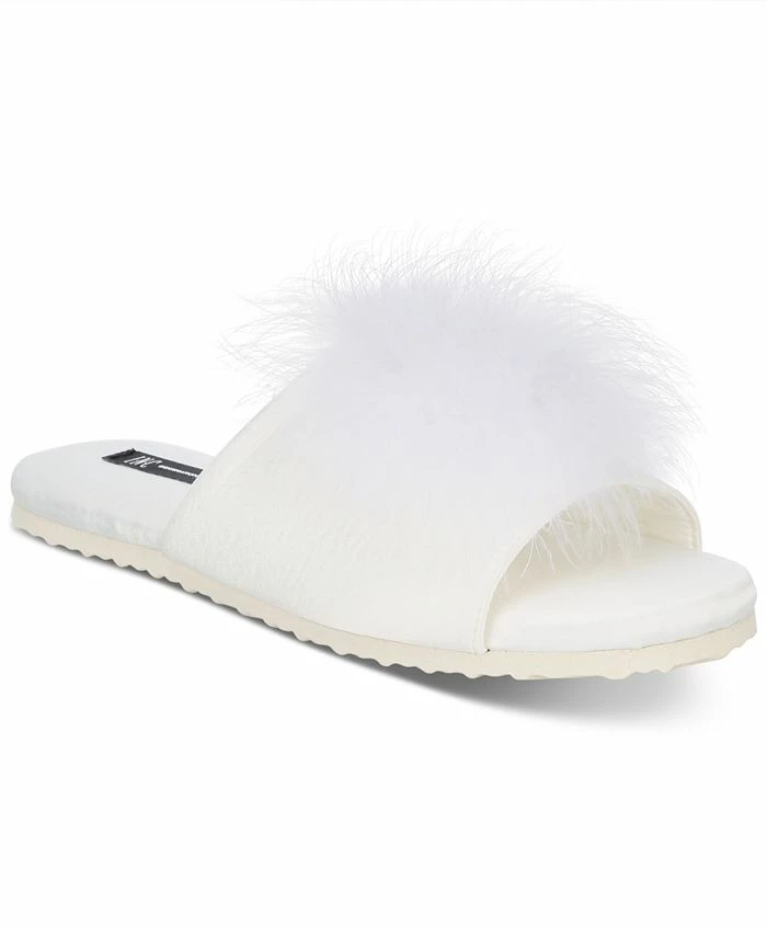 Feather trim brings a touch of glamour to these luxurious satin slide slippers from INC International Concepts®.