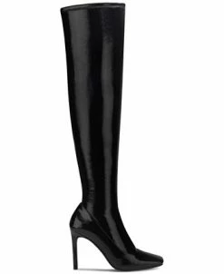 A stiletto heel adds extra cool factor to these ultra-sleek square-toe over-the-knee boots from INC International Concepts®.