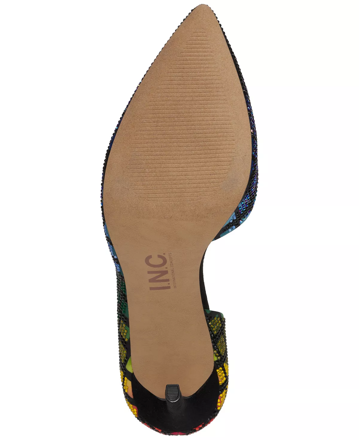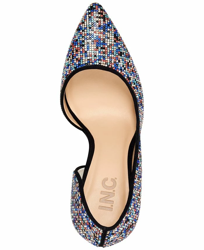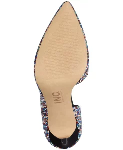 INC International Concepts’ Kenjay pumps add luxe intrigue to your evening look in a sultry d’Orsay silhouette studded with imitation pearls and rhinestones.