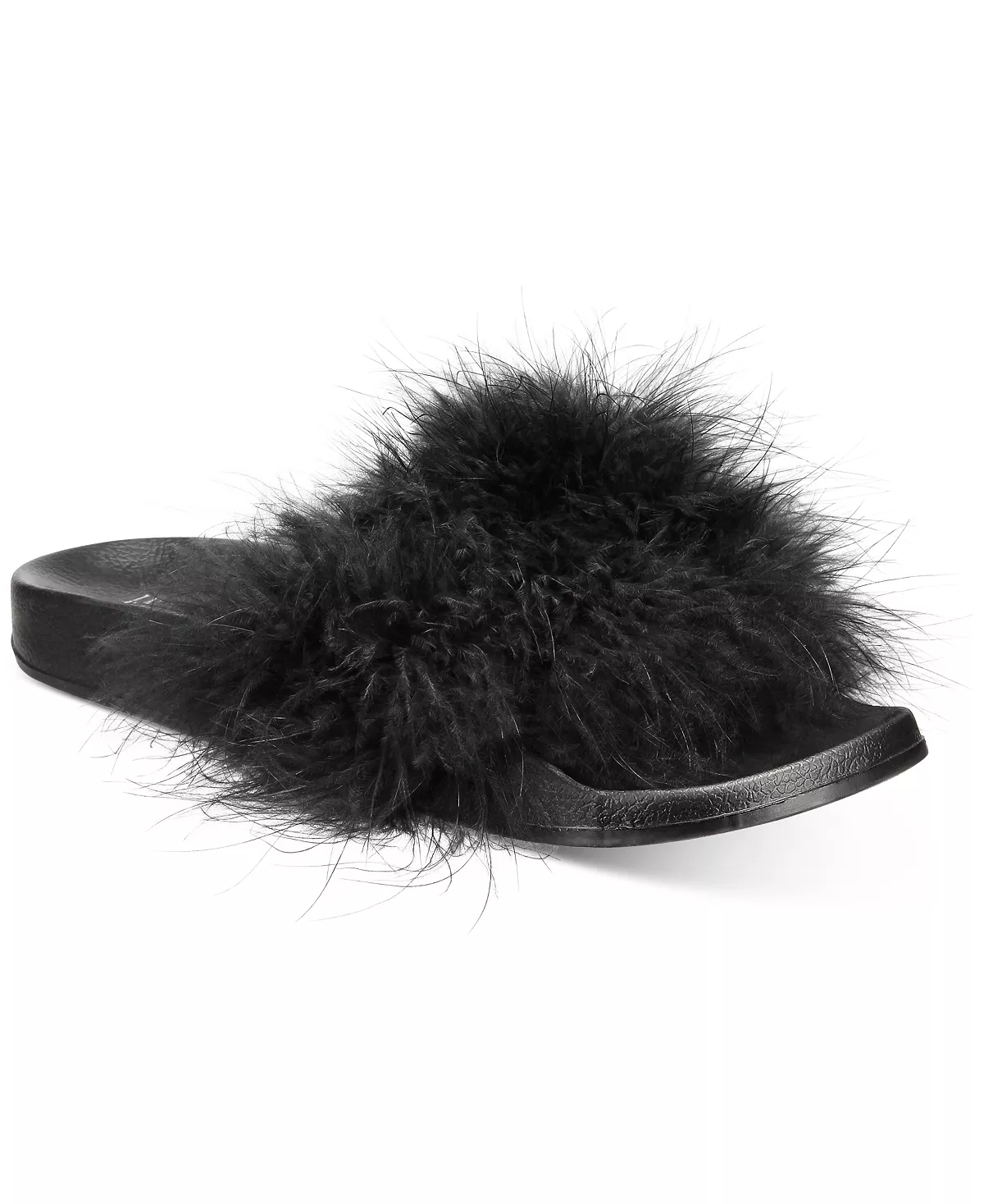 Fluffy and fun, these slide slippers from INC International Concepts® deliver playful style.