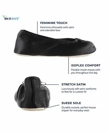 Tired toes deserve a pretty pampering. Blending the comfort of a sock with the wearability of a slipper, these satin ballerinas are the perfect end to a long day. By Isotoner.
