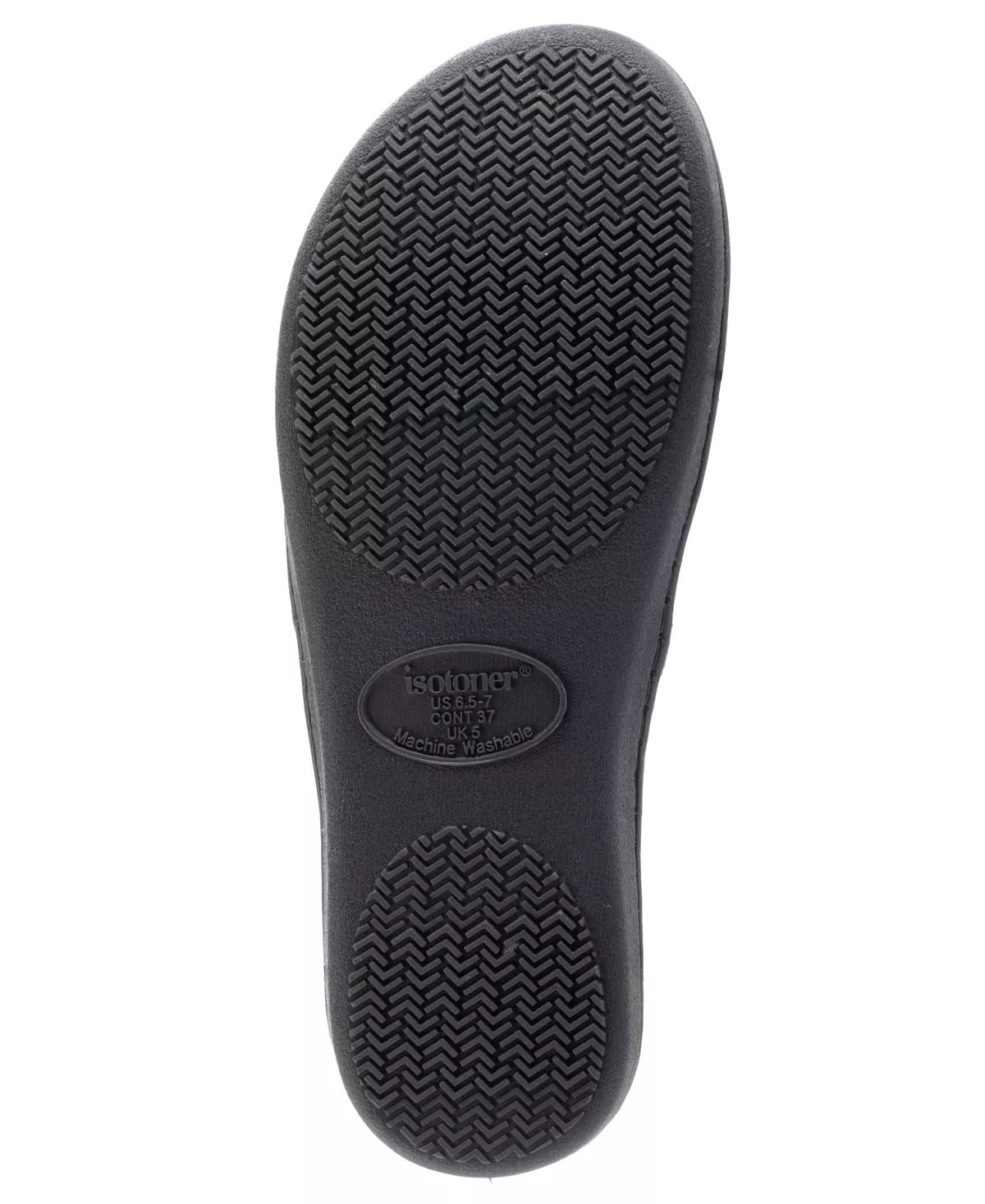 Supreme softness and support for unparalleled relaxation with every step! isotoner Women’s Space Dye Andrea Slide Slippers are made with a microterry lining that wraps your feet in premium softness and luxurious warmth and wicks moisture away. Extra cushy heel absorbs impact for all-day comfort. Open heel slips on and off easily for on-the-go convenience, and versatile indoor/outdoor sole goes where you go.