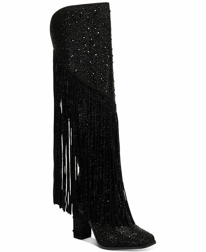 Fringe is in full swing along the diagonal lines of the lofty Asire boots from Jessica Simpson.