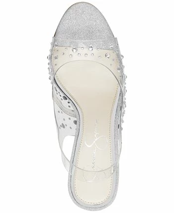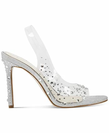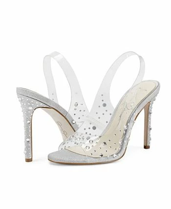 Turn heads in this peep toe pump with embellished upper. This open-toe pump feature a clear and vinyl upper.