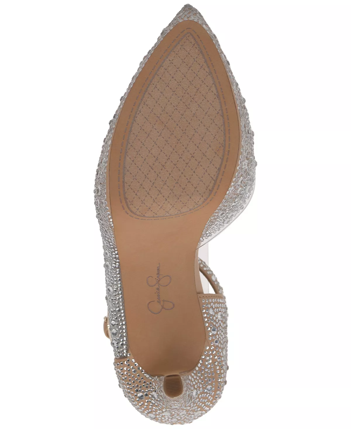 Shimmery and sheer, Jessica Simpson’s Ormanda studded ankle-strap platform pumps step out with standout style.