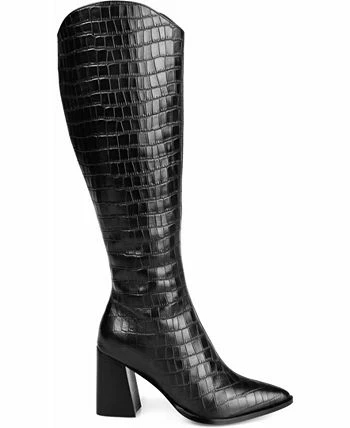 Boldly take on the new season with the Laila by Journee Signature. This knee-high boot features a stacked block heel and a 4mm tru comfort foam footbed for a comfortable lift. Genuine leather with a croc texture throughout and an pointed-toe perfect the design.
