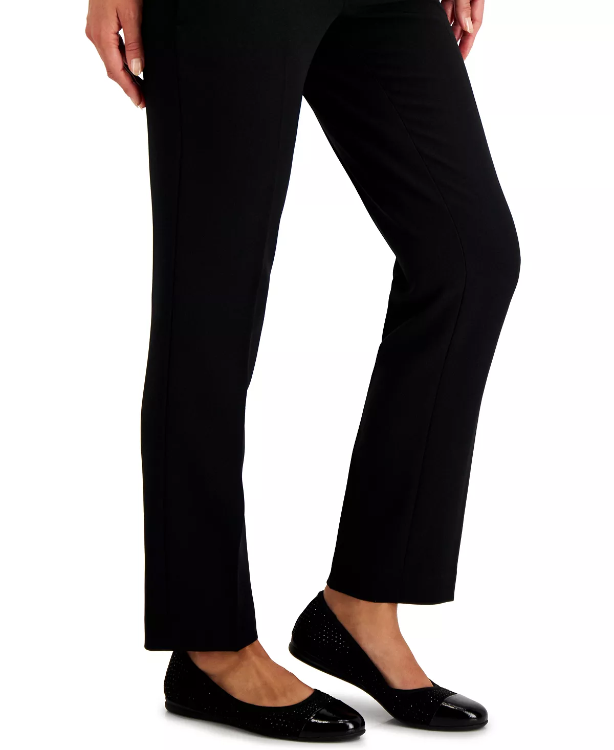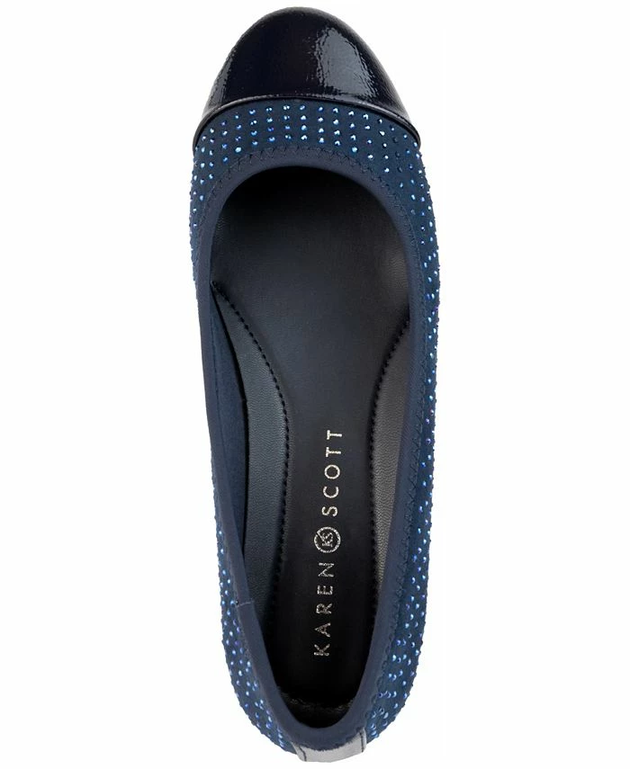 A staple for any wardrobe, Karen Scott’s Ambree flats pair a timeless slip-on design with patent toes and rhinestones for a sophisticated finish.