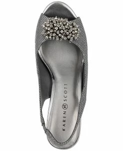 Shimmering metallics and a rhinestone brooch bring sparkling elegance to dressy looks in these Breena platform pumps from Karen Scott.