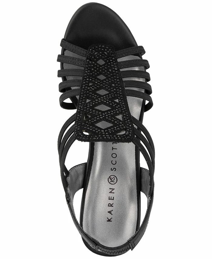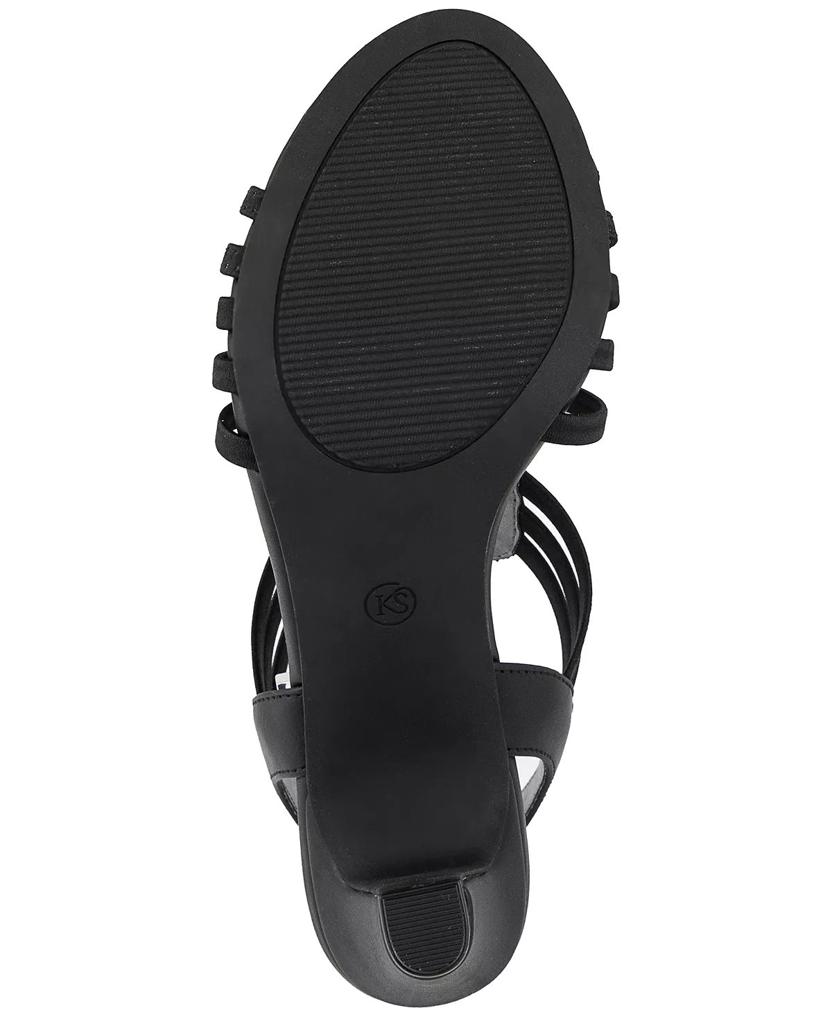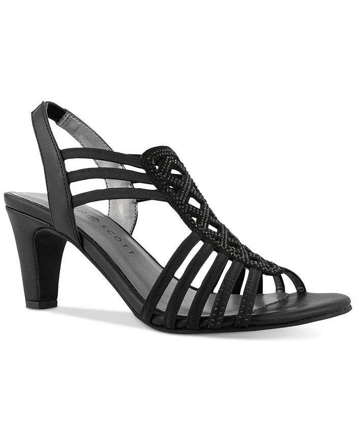 Slender straps radiate from a wide woven T-strap detail in the chic Danely stilettos by Karen Scott.