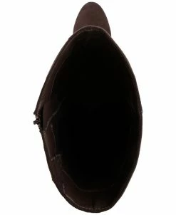 - Almond-toe wide-calf dress boots with inner ankle zipper closure