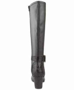 Dress up skinny jeans and accent pencil skirts in the gorgeous lines of Karen Scott’s Isabell wide-calf buckled boots.