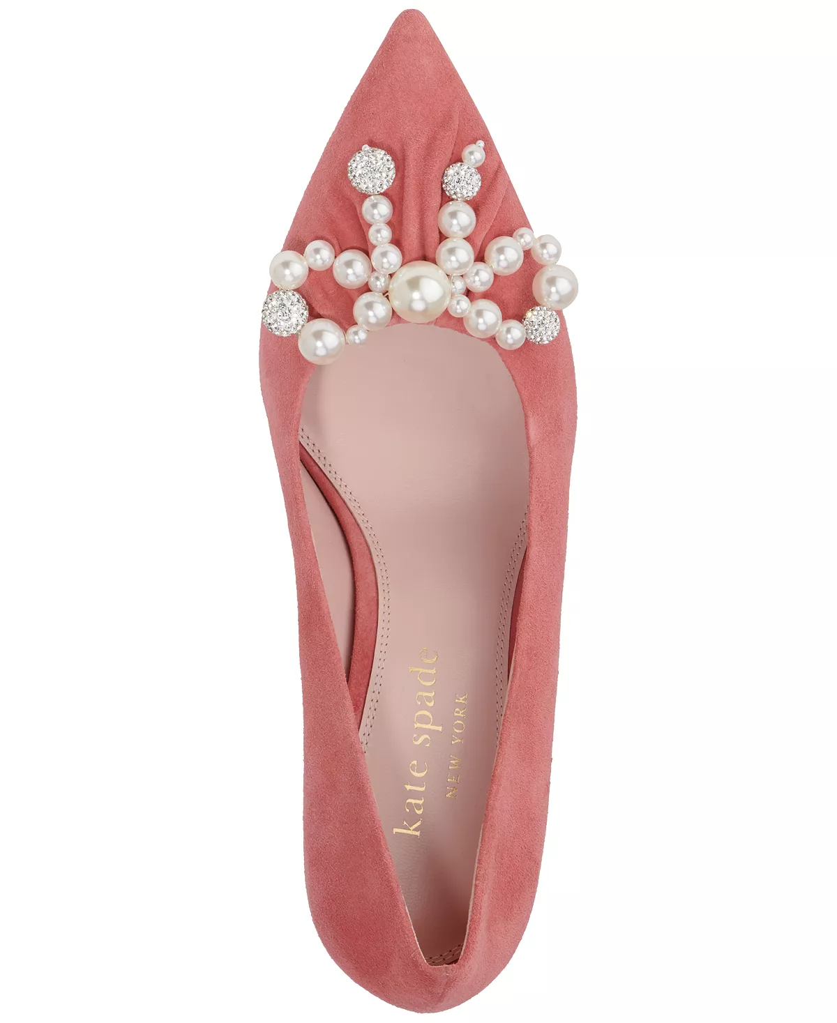 Elegant embellishments adorn pretty pointed toes in the gorgeous stiletto lift of Kate Spade New York’s Elodie pumps.