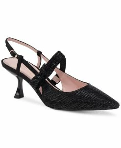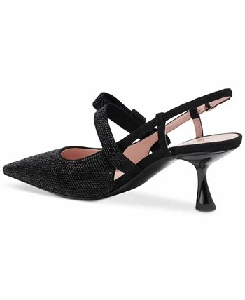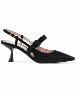 - Pointed-toe slip-on slingback pumps with adjustable buckle closure