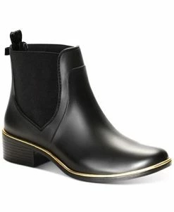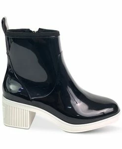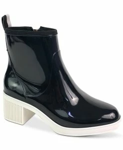 - Round-toe rain booties with inner ankle zipper closure