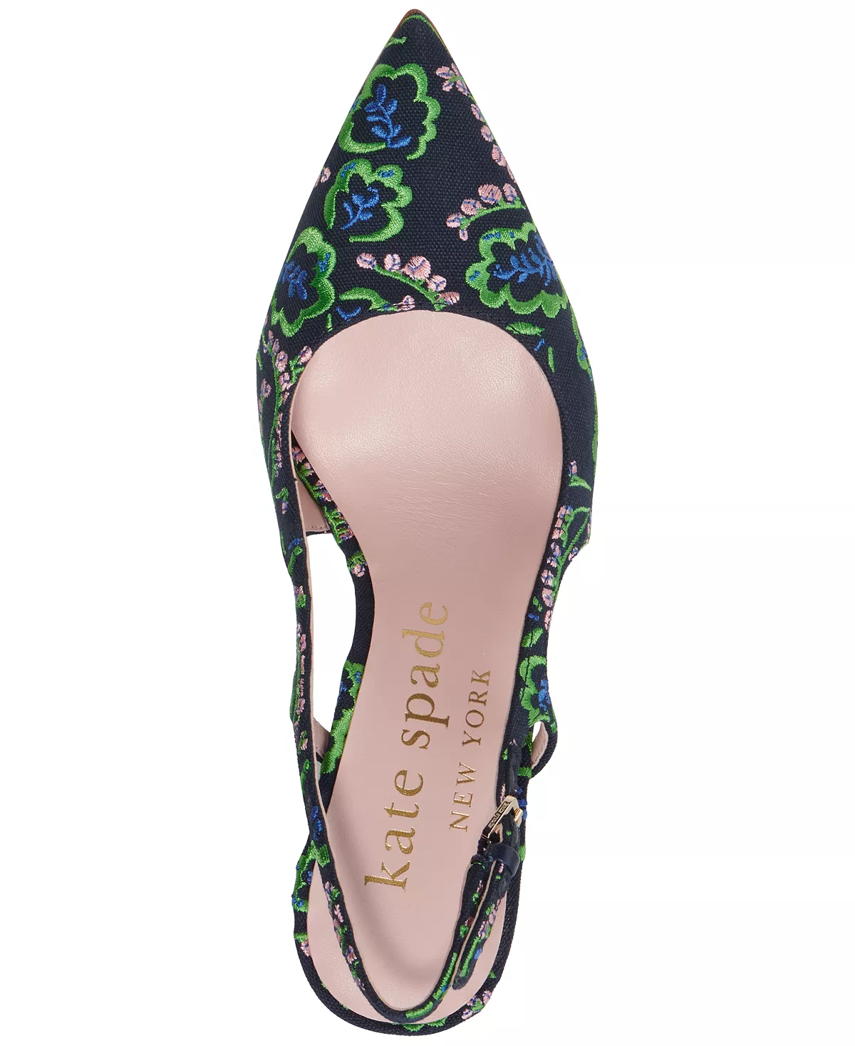 Pops of color with dimensional embroidery add fun texture to dressy looks in Kate Spade New York’s Valerie pumps.