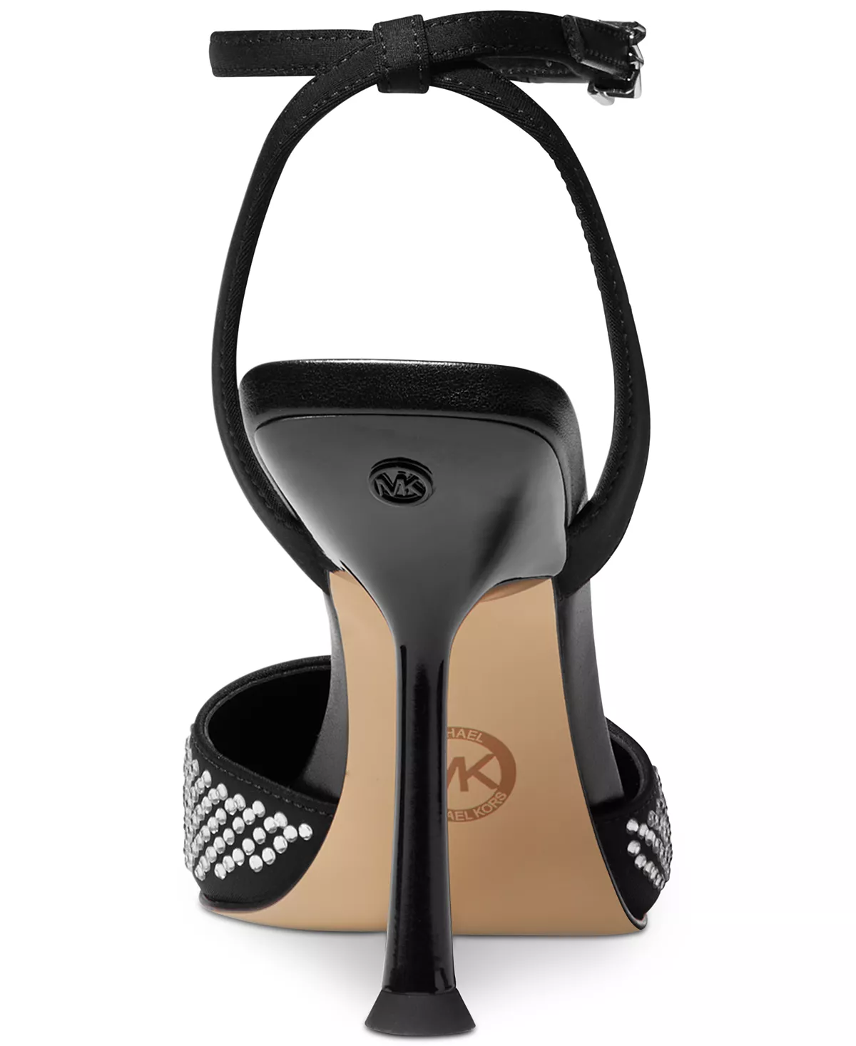 Signature style and rhinestone shimmer combine in elegant ankle straps and lacquered heels on the Imani pumps from MICHAEL Michael Kors.