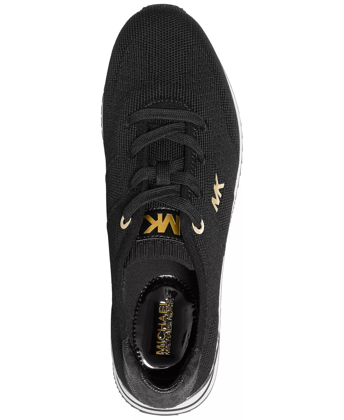 Gold-tone accents lend brilliant flash to the retro-inspired jogger stylings of the Monique sneakers from Michael Michael Kors. The soft knit upper provides all day comfort and breathability.