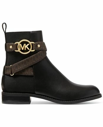 Wrapping straps and signature hardware complete a sleek profile in the versatile Rory booties from MICHAEL Michael Kors.