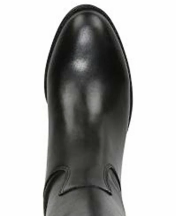 - Round-toe riding boots with zipper closure