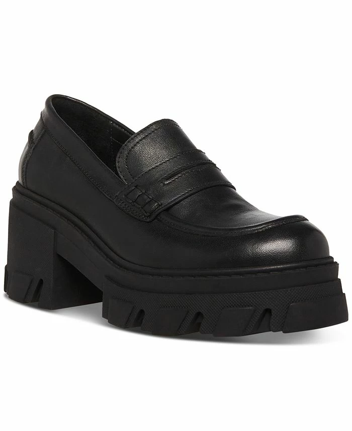 Lofted on lug platforms, the Beth loafer pumps from Steve Madden update classic penny-keeper detailing with modern height.