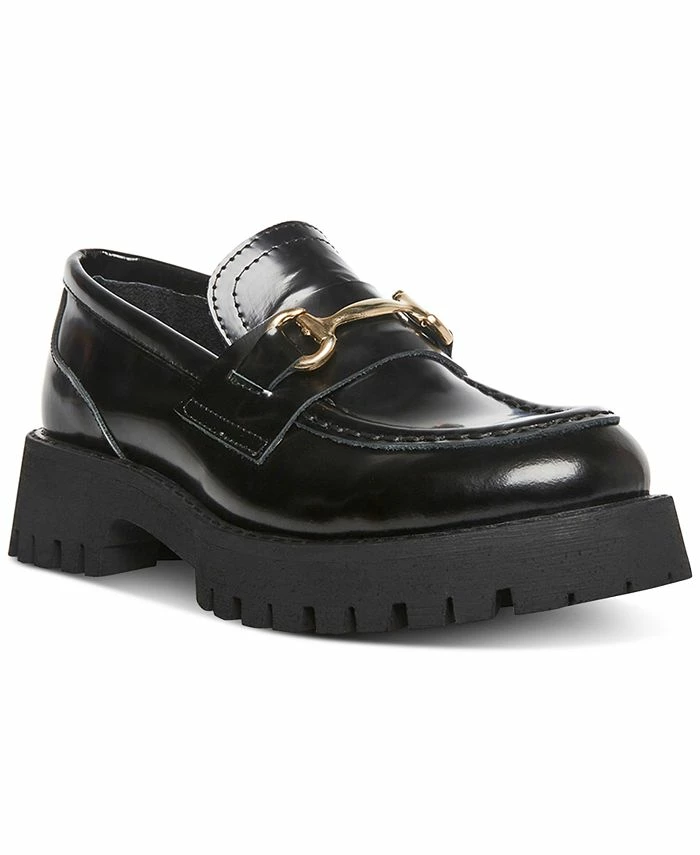 Bit buckle hardware tops menswear-inspired tailoring and chunky lug platforms for a trend-right lift in the Lando loafers from Steve Madden.