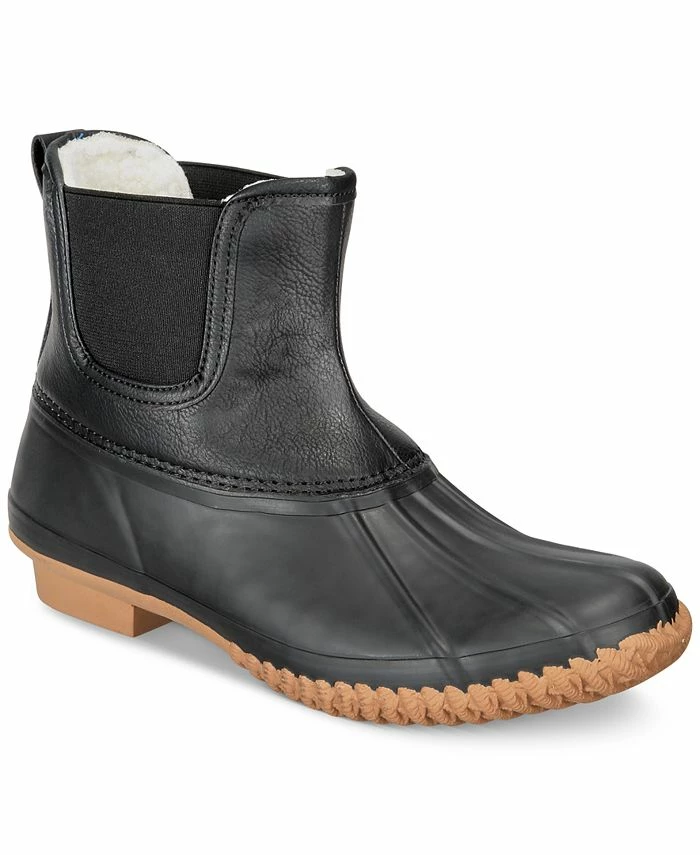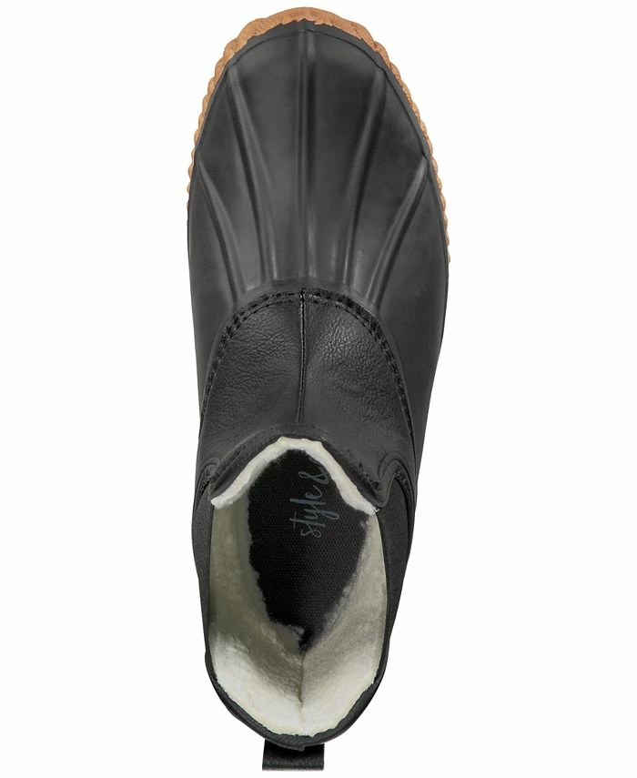 Classic duck styling gets a cozy update with faux-fur lining in the Harlii pull-on rain boots from Style & Co.