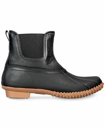 - Duck-style detailing at vamp; inset side gores; back heel tab