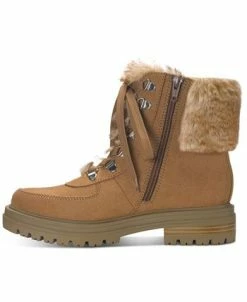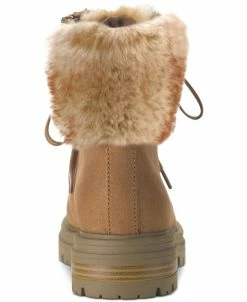 A chunky lug platform grounds the fresh hiker style and comfy faux-fur details on the Orlaa cold-weather booties from Sun + Stone.
